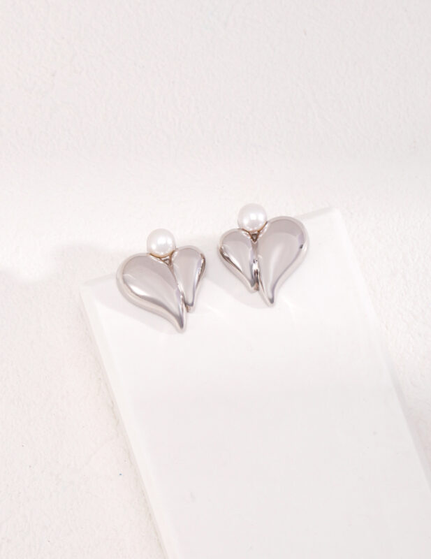 Classic Poker and Romantic Heart Sterling Silver Pearl Earrings