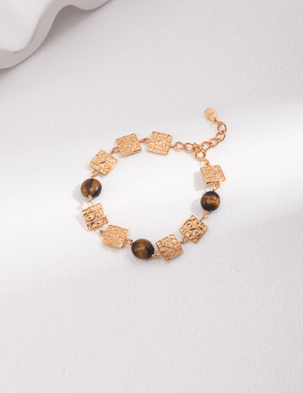 Vintage Gold Sterling Silver Tiger Eye Bracelet $55.00