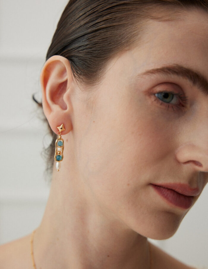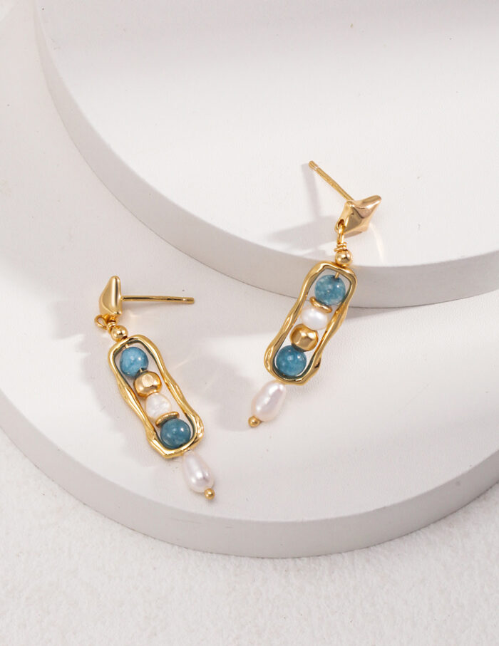 These natural pearl amazonite earrings show a charming combination of gold and blue, which is both noble and mysterious. The earrings are about 4cm high and equipped with about 4.5mm pearls, which will decorate your ears like stars in the sky. The mysterious blue of Amazonite and the pure white of pearls complement each other, adding a unique touch of color to your overall look. Exquisite craftsmanship and high-quality materials give these earrings not only a noble appearance, but also long-lasting durability.