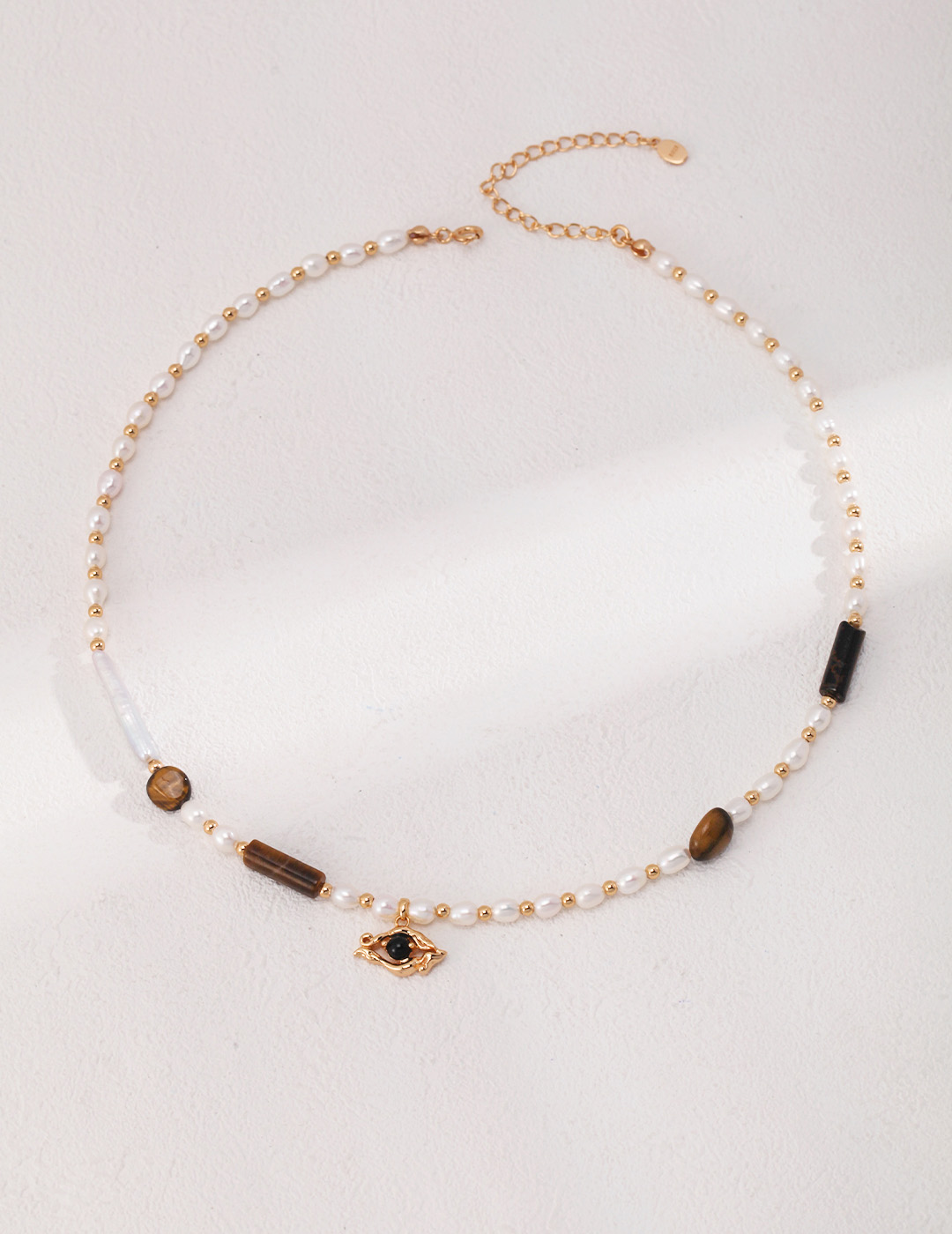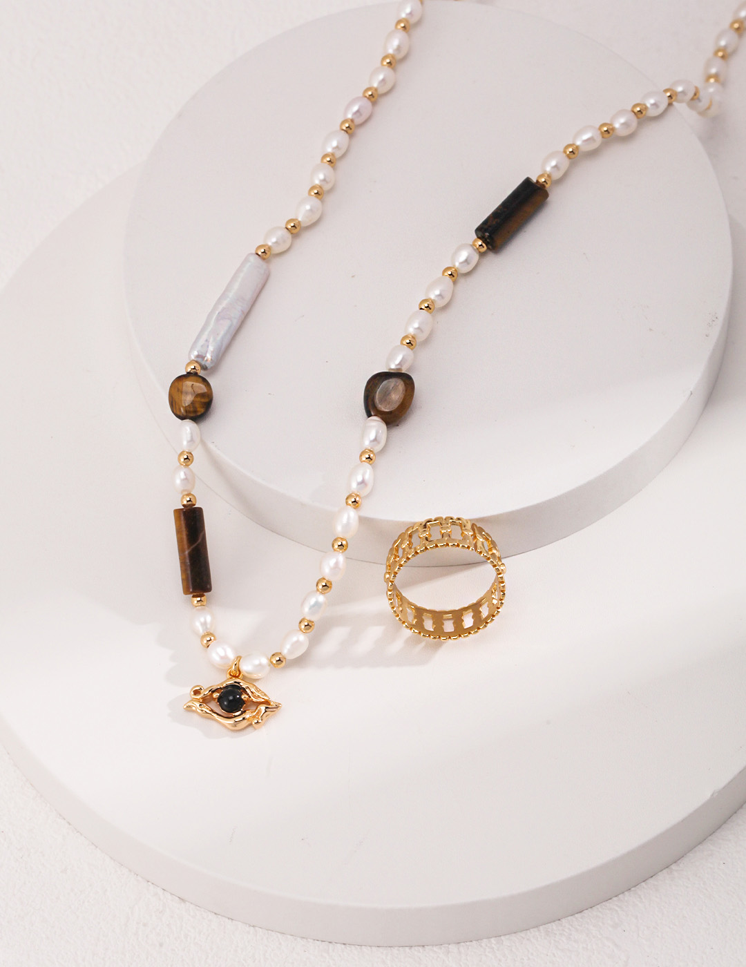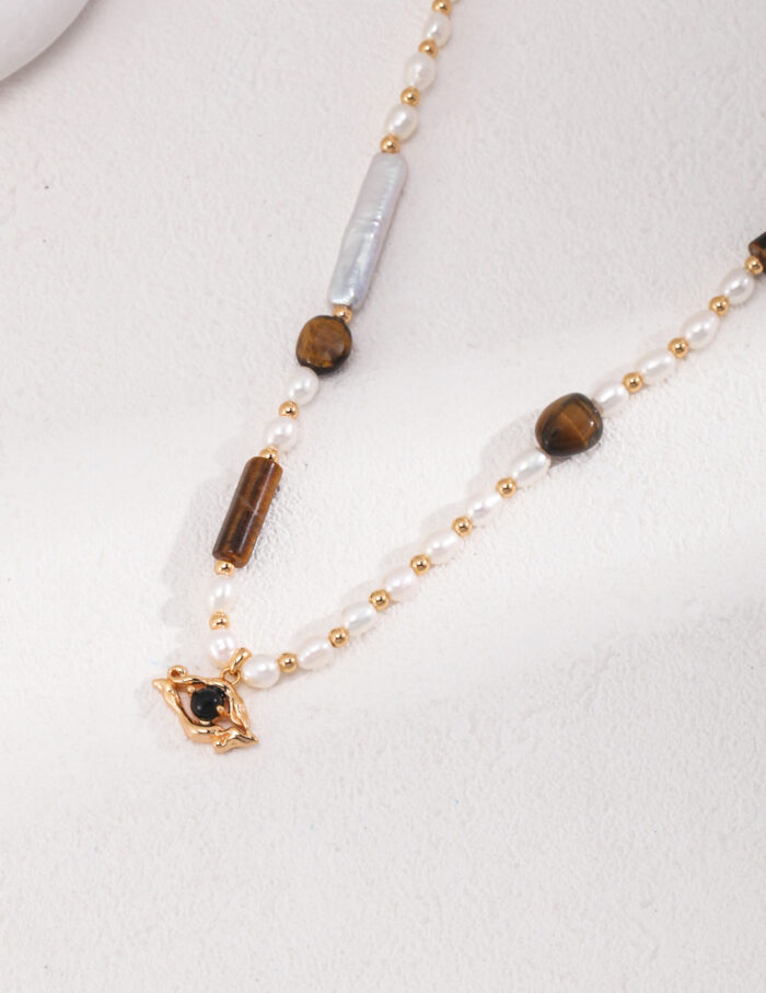 • Material: 925 silver / tiger eye stone / black agate / natural pearl
