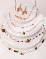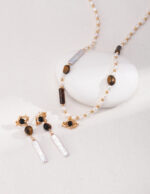 This pearl tiger eye stone necklace and earrings set presents retro magnificence and elegance. The necklace and earrings are both made of 925 silver, with tiger eye stone, black agate and natural pearls, showing a unique design style. The chain length is about 37cm, and there is another 7cm extension chain, the length can be adjusted as needed. The tiger eye stones are 4.5mm, 15mm and 4.5mm respectively, and the pearl sizes are 20mm, 5.2mm and 4mm respectively. Each piece has exquisite craftsmanship and unique charm.